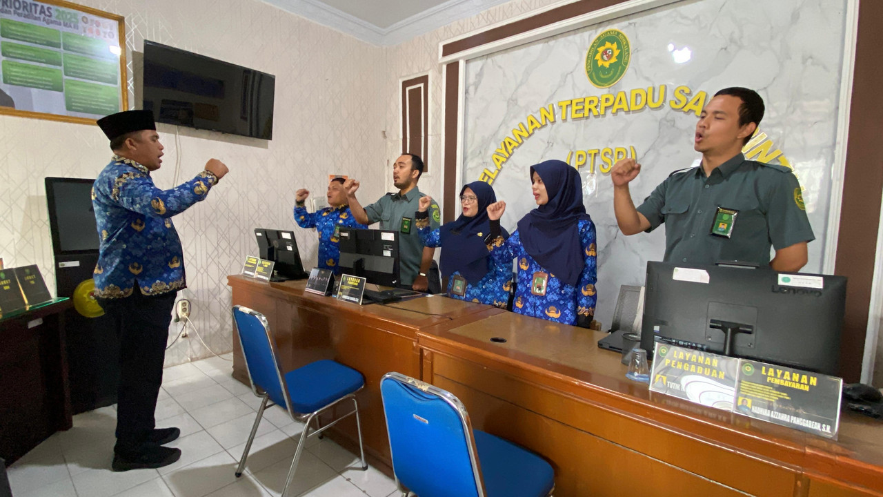 Sidikalang - Senin 10 November 2025 Petugas PTSP Pengadilan Agama Sidikalang mengikuti kegiatan morning briefing. Bertempat diruang PTSP, Kasubbag Umum dan Keuangan, bapak Surya Darma Syahputra Berutu, M.Ag memberikan arahannya.