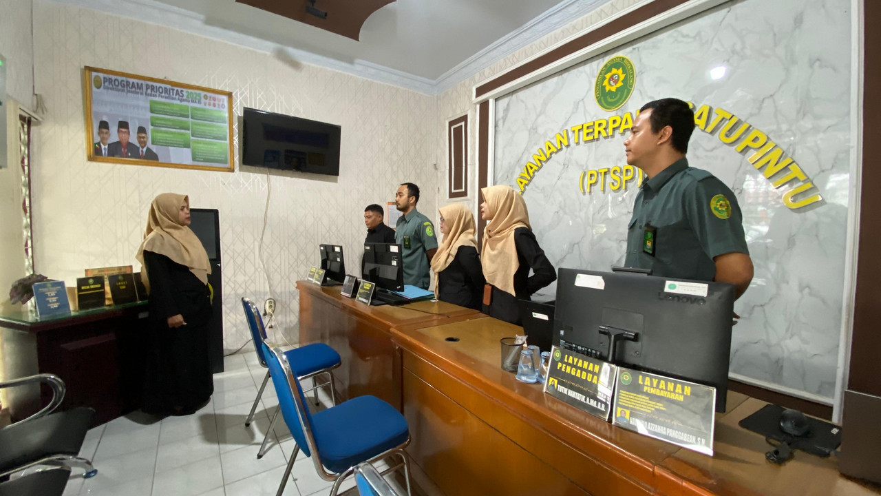 Sidikalang - Rabu 12 November 2025 Petugas PTSP Pengadilan Agama Sidikalang mengikuti kegiatan Morning Briefing sebelum kembali memulai pelayanan kepada masyrakat. Adapun pemateri pada kesempatan kali ini adalah Panitera Muda Hukum Pengadilan Agama Sidikalang, ibu Yusmidawarni Daulay,S.H.