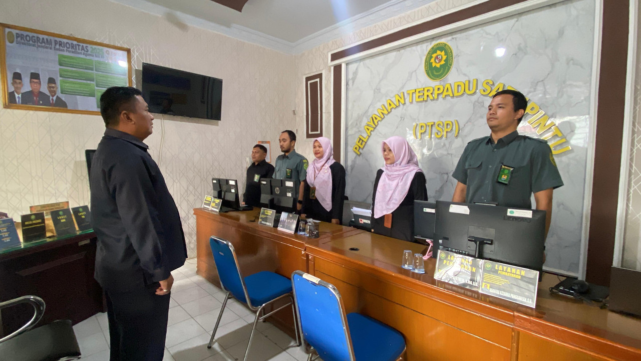 Sidikalang - Rabu 19 November 2025 Petugas PTSP Pengadilan Agama Sidikalang kembali memulai pelayanan. Sebelum memulai pelayanan terlebih dahulu petugas PTSP memperoleh bimbingan dan arahan oleh Sekretaris Pengadilan Agama Sidikalang bapak Siswoyo, S.Kom., M.H.