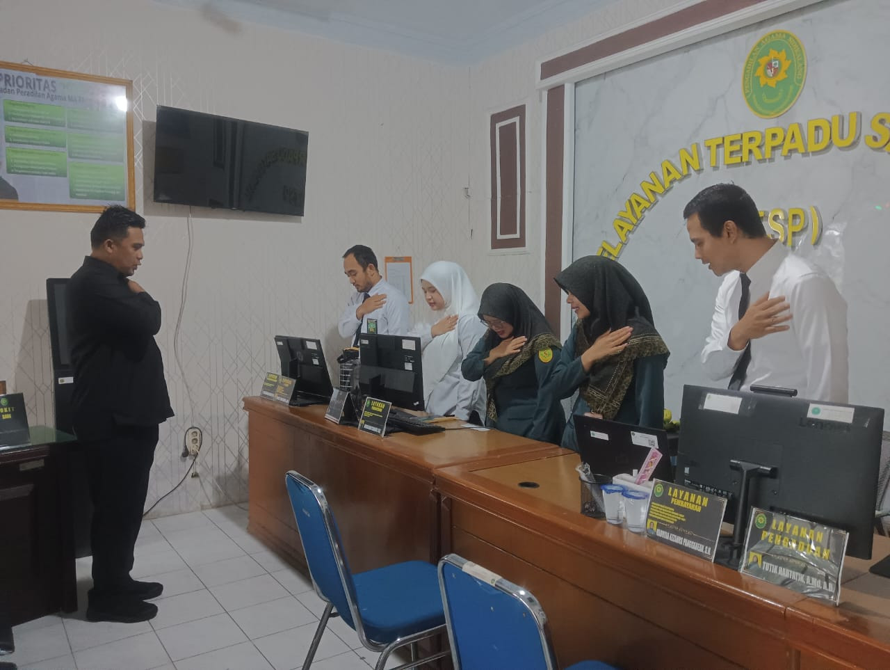 Sidikalang - Selasa 25 November 2025 Petugas PTSP Pengadilan Agama Sidikalang mengikuti kegiatan morning briefing. Bertempat diruang PTSP, Kasubbag Umum dan Keuangan, bapak Surya Darma Syahputra Berutu, M.Ag memberikan arahannya.