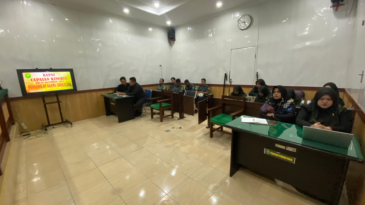 Sidikalang - Selasa 9 Desember 2025 Setelah mengikuti rapat koordinasi, bertempat di ruang sidang Pengadilan Agama Sidikalang, Aparatur Pengadilan Agama Sidikalang melanjutkan rapat dengan membahas capaian kinerja pada bulan November tahun 2025.
