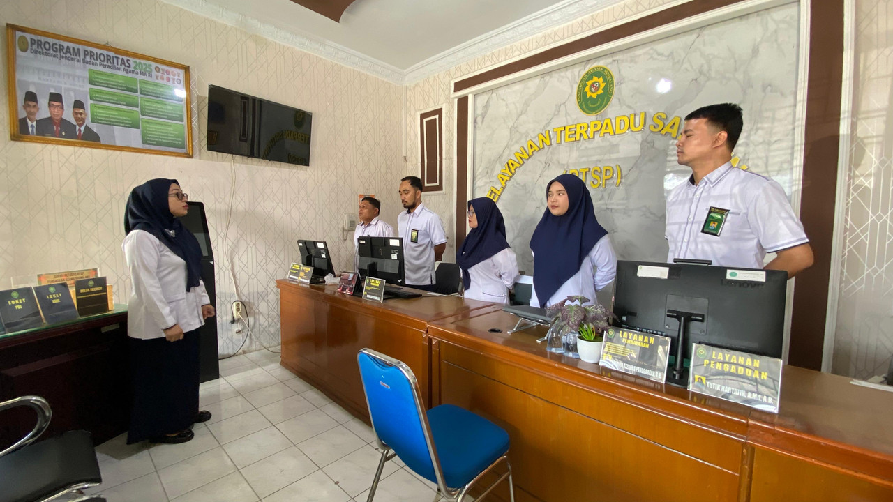 Sidikalang - Senin 5 Januari 2026 Petugas PTSP Pengadilan Agama Sidikalang kembali memulai pelayanan. Sebelum memulai pelayanan terlebih dahulu petugas PTSP memperoleh bimbingan dan arahan oleh Ketua Pengadilan Agama Sidikalang bu Sri Suryada Br. Sitorus, S.H.I.,M.H dalam morning briefing.