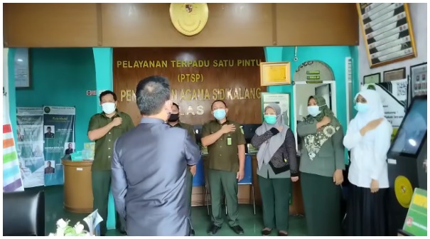 Dalam arahannya, Mulyadi Antori, S.H.I. berpesan kepada seluruh petugas agar memberikan pelayanan yang semaksimal mungkin kepada pengunjung yang datang ke pengadilan, terutama dalam memilah dan memilih kosakata yang santun dalam berkomunikasi. Hal ini perlu menjadi perhatian, karena pengunjung yang datang ke pengadilan pada umumnya adalah pihak yang ingin mengadukan permasalahan dan mencari informasi di Pengadilan. Beliau mengapresiasi kinerja yang telah ditunjukkan oleh Petugas PTSP selama ini dan berharap kinerja yang telah baik agar dipertahankan dan semaksimal mungkin agar ditingkatkan. Mengakhiri arahan singkatnya, beliau juga berpesan kepada para petugas agar tetap memberikan pelayanan pada jam istirahat dengan mengatur pembagian jadwalnya tanpa mengurangi kualitas pelayanan dan tidak mengganggu hak petugas untuk beristirahat siang.