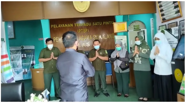 Sidikalang- Pengadilan Agama Sidikalang melaksanakan briefing Petugas Pelayanan Terpadu Satu Pintu (PTSP) pada pagi hari ini. Sebagai salah satu inovasi di Pengadilan Agama Sidikalang, briefing diadakan setiap hari Selasa dan Kamis pada pukul 08:30 WIB. Briefing yang dilaksanakan pada hari ini, Selasa 5 Oktober 2021 merupakan yang perdana di Bulan Oktober mengingat Briefing sebelumnya diadakan pada hari Kamis 30 September 2021. Bertindak sebagai pemateri briefing, yakni Mulyadi Antori, S.H.I., Hakim Pratama Pengadilan Agama Sidikalang. Dalam hal ini, seluruh Petugas PTSP tampak antusias mendengarkan arahan yang disampaikan pemateri.