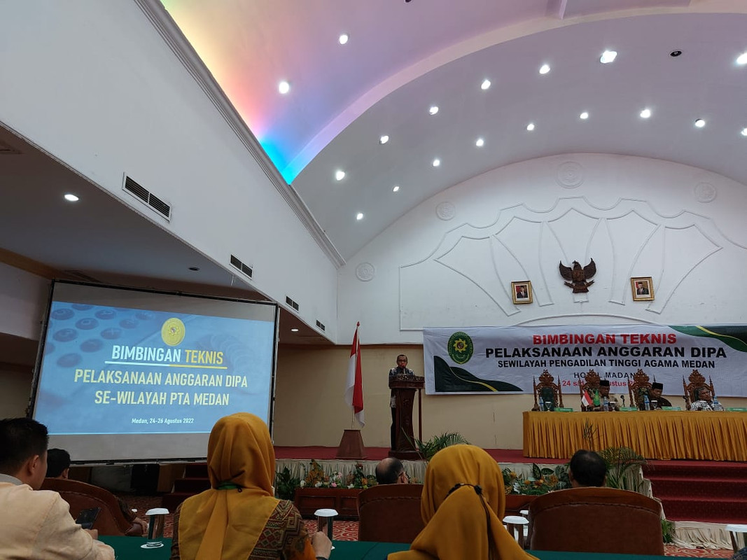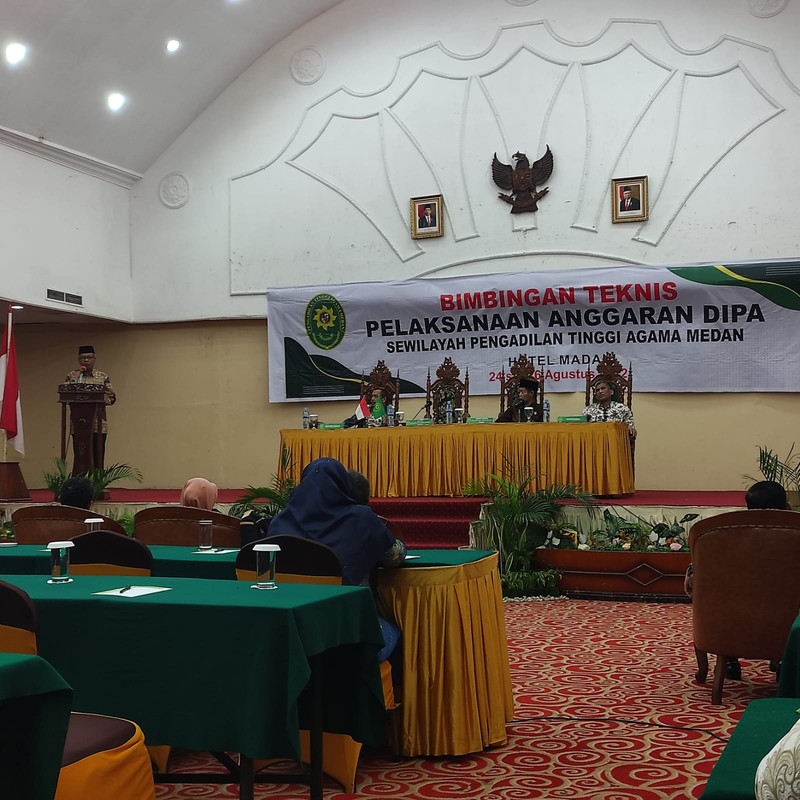 Medan- Memenuhi surat undangan dari Ketua Pengadilan Tinggi Agama Medan Nomor: W2-A/1685/PP.01.3/VIII/2022 perihal Pemanggilan Peserta Bimbigan Teknis Pelaksanaan Anggaran DIPA Sewilayah Pengadilan Tinggi Agama Medan, maka sekretaris Pengadilan Agama Sidikalang, Siswoyo,S.Kom.,M.H, Kasubbag PTIP, Ramli Affandi Berutu,S.H.I.,M.Ag dan Plt. Kasub Umum dan Keuangan, Lailatur Rahmi, A.Md.,A.B hadir untuk mengikuti kegiatan tersebut. yang dilaksanakan selama 3 (tiga) hari yakni sejak tanggal 24 sampai 26 Agustus 2022 di Hotel Madani Medan,