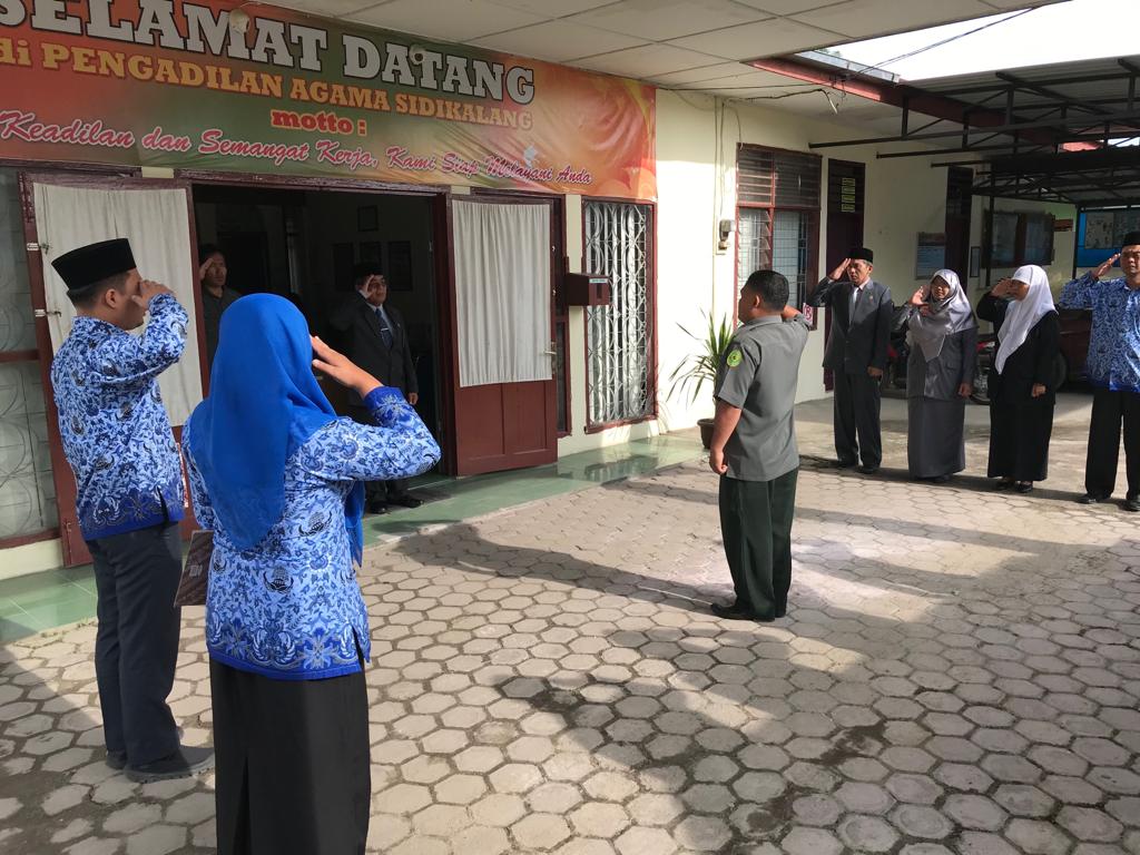 Sidikalang – 29 November 2018. Berdasarkan surat Sekretaris Mahkamah Agung nomor: 1434/SEK/KS.00/11/2018, Pengadilan Agama Sidikalang menyelenggarakan Upacara Peringatan Hari Ulang Tahun KORPRI ke-47 Tahun 2018 yang bertempat di halaman gedung Pengadilan Agama Sidikalang. Upacara bendera dimulai pada pukul 08.00 WIB dan dipimpin langsung oleh Ketua Pengadilan Agama Sidikalang Bpk. Rohyan, S.H., selaku Inspektur Upacara, serta dihadiri juga oleh jajaran Hakim, Pejabat Struktural, Pejabat Fungsional, dan Tenaga Kontrak/Honorer Pengadilan Agama Sidikalang.