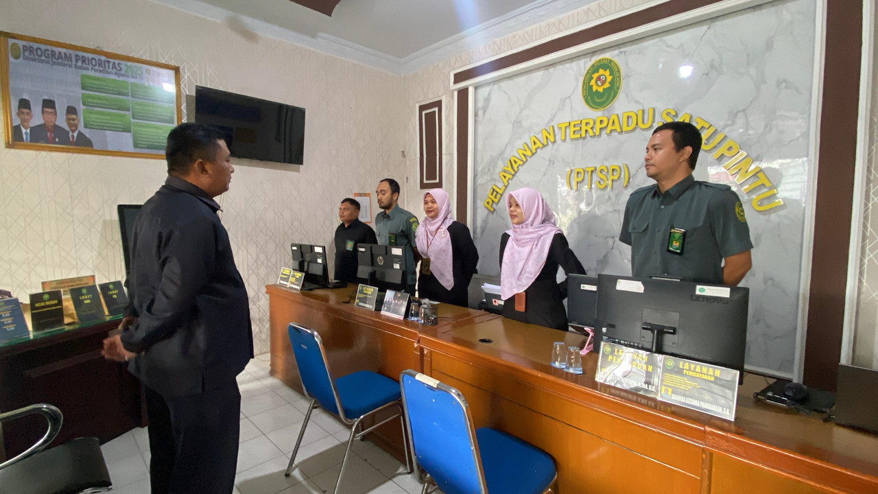 Sidikalang - Rabu 19 November 2025 Petugas PTSP Pengadilan Agama Sidikalang kembali memulai pelayanan. Sebelum memulai pelayanan terlebih dahulu petugas PTSP memperoleh bimbingan dan arahan oleh Sekretaris Pengadilan Agama Sidikalang bapak Siswoyo, S.Kom., M.H.