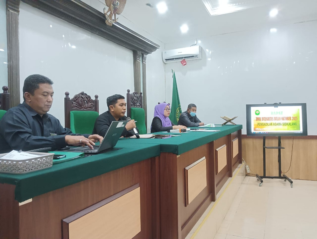 Sidikalang - Rabu 15 Oktober 2025 Aparatur Pengadilan Agama Sidikalang Kembali mengikuti rapat. Adapun pembahasan rapat pada kesempatan ini adalah terkait Pembangunan Zona Integritas di Pengadilan Agama Sidikalang.