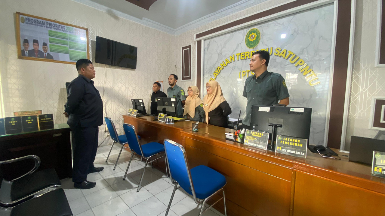 Sidikalang - Kamis 15 Januari 2026 Petugas PTSP Pengadilan Agama Sidikalang mengikuti kegiatan Morning Briefing sebelum kembali memulai pelayanan kepada masyrakat. Adapun pemateri pada kesempatan kali ini adalah Panitera Muda Hukum Pengadilan Agama Sidikalang, ibu Yusmidawarni Daulay,S.H.