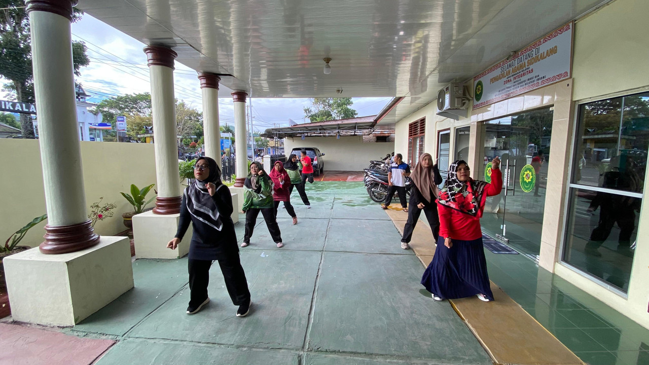 Sidikalang - Jumat 12 Desember 2025 Pengadilan Agama Sidikalang menggelar kegiatan senam pagi. Kegiatan ini diikuti oleh seluruh Aparatur Pengadilan Agama Sidikalang. Senam didahului dengan pemanasan yang dilanjutkan ke gerakan inti dan ditutup dengan pendinginan. Seluruh peserta mengikuti gerakan yang ditampilkan melalui layar. Tampak antusiasnya para aparatur Pengadilan Agama Sidikalang mengikuti setiap gerakan yang ada.