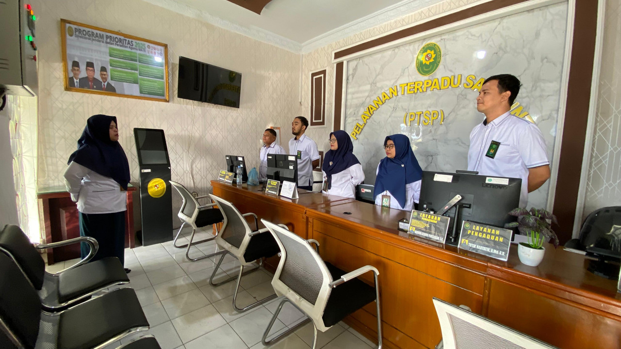 Sidikalang - Senin, 2 Februari 2026 Petugas PTSP Pengadilan Agama Sidikalang mengikuti kegiatan Morning Briefing sebelum memulai pelayanan kepada masyrakat. Adapun yang menyampaikan materi pada kesempatan kali ini adalah Panitera Muda Hukum Pengadilan Agama Sidikalang, ibu Yusmidawarni Daulay,S.H.